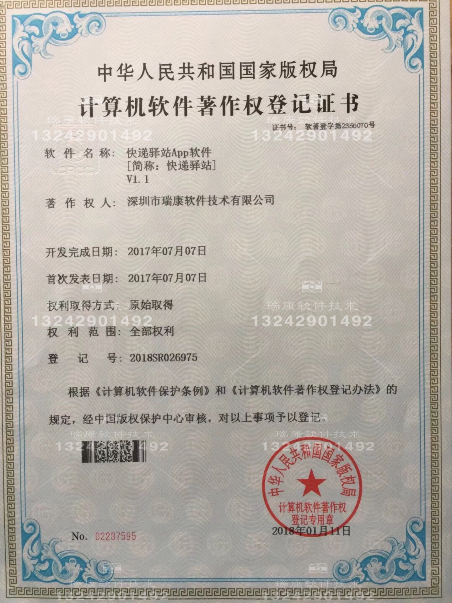 根據《計算機軟件保護條例》和《計算機軟件著作權登記辦法》的規定和中華人民共和國國家版權局的考證,日前,“瑞康科技”再次榮獲計算機軟件著作權登記證書。